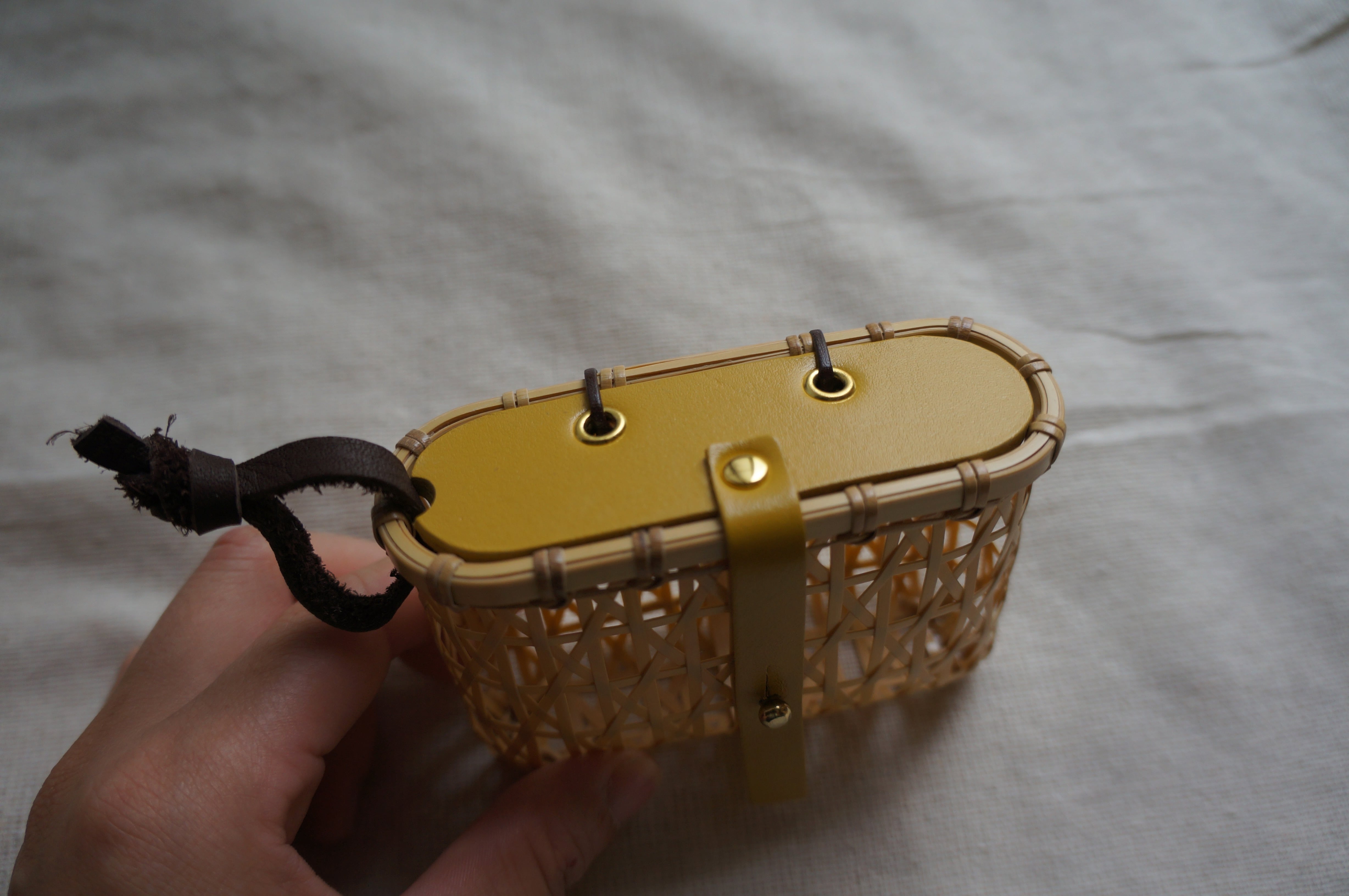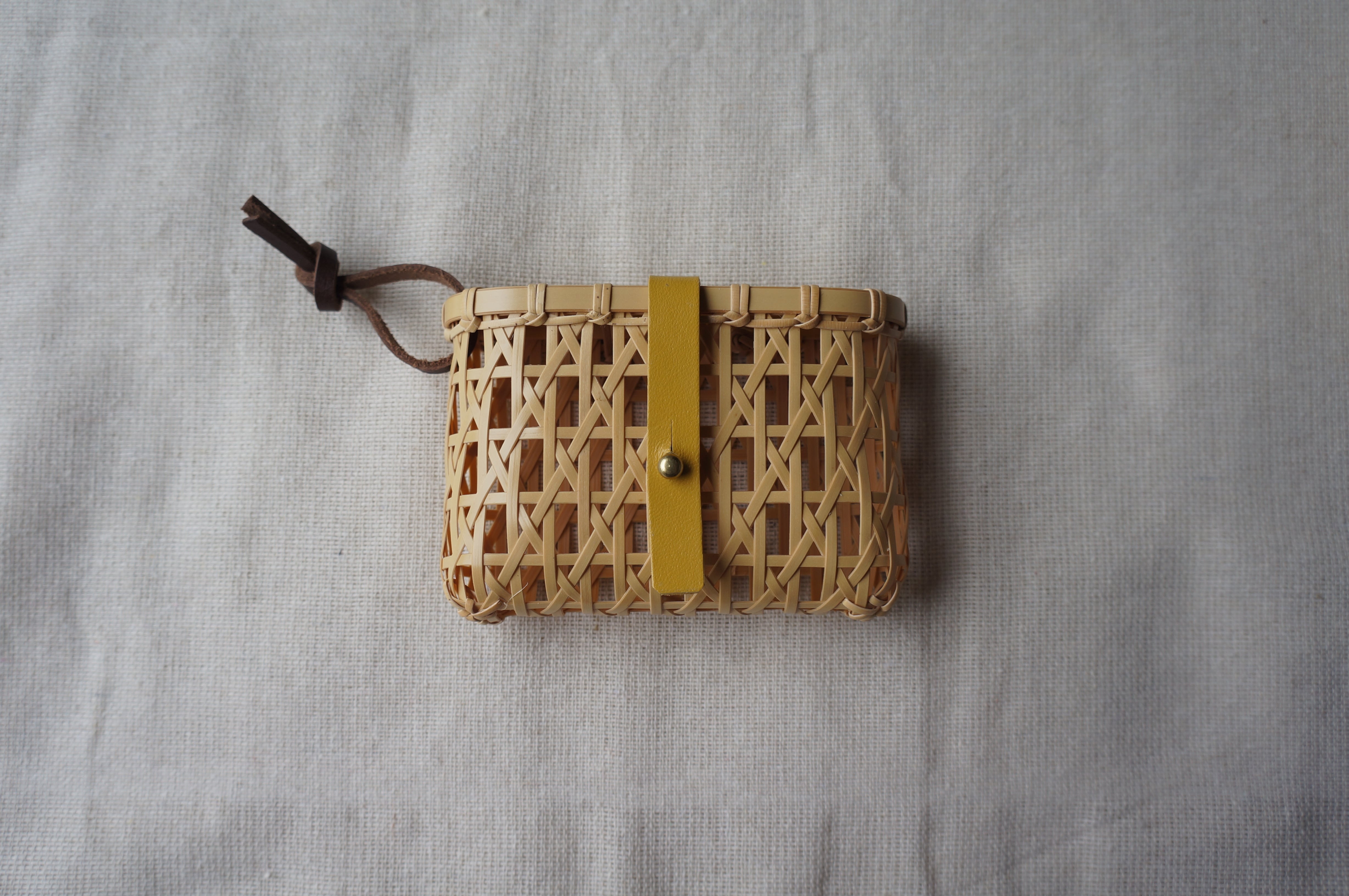 【竹×革×真鍮】添う籠(そうかご)黄 /小物入れ ポーチ 竹かご 竹細工 贈り物 お祝い