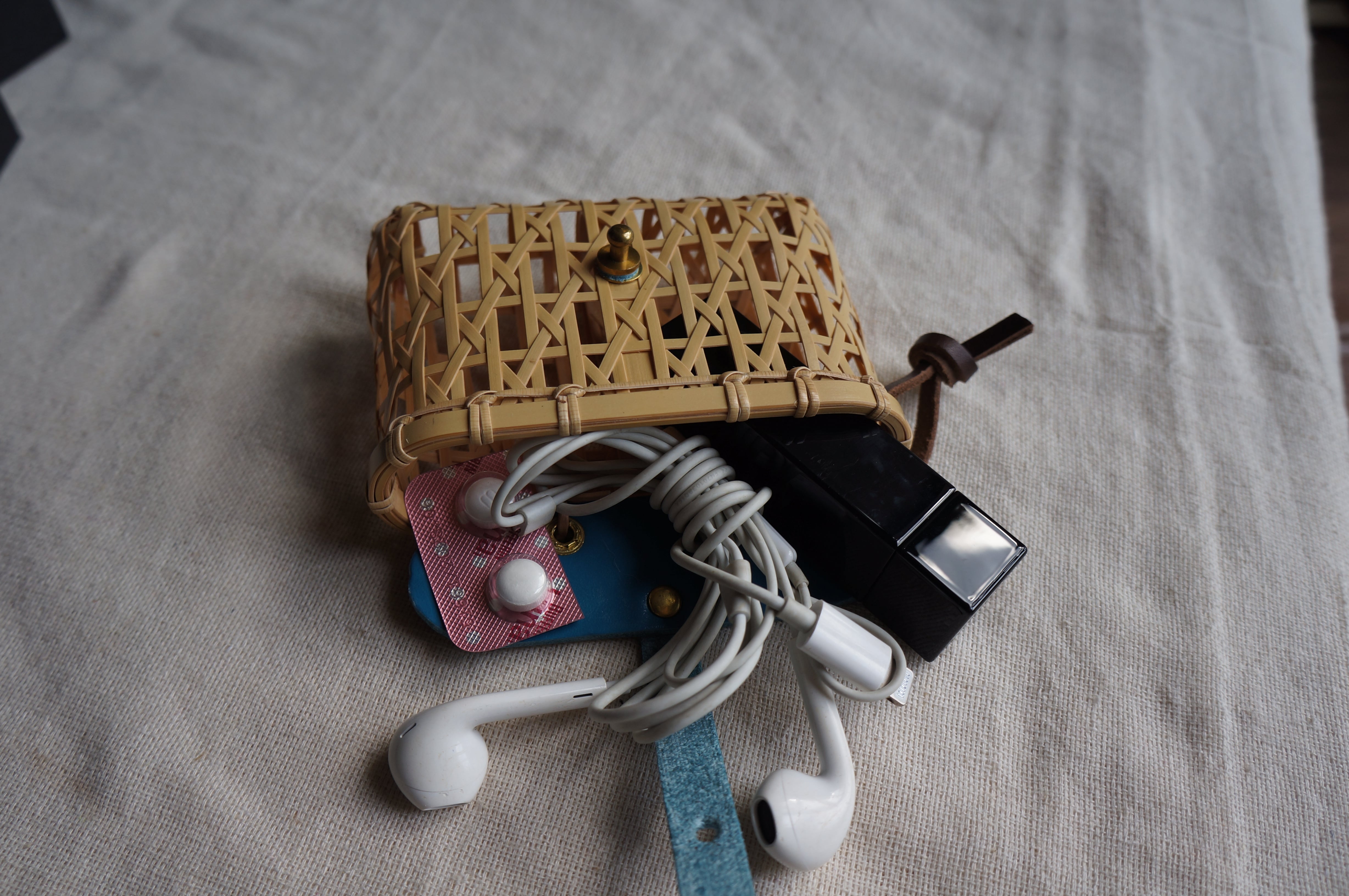 【竹×革×真鍮】添う籠(そうかご)青 /小物入れ ポーチ 竹かご 竹細工 贈り物 お祝い